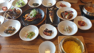 곤지암 리조트 근처 맛집 추천 베스트 10 중 첫번째 맛집은 동산들밥입니다. 대표 메뉴인 동산들밥정식에는 각종 나물, 잡채, 제육볶음, 간장 게장, 고등어구이등 14가지 기본 찬과 구수한 청국장, 강황을 넣은 영양솥밥을 드실 수있으며, 특정식에는 동산들밥정식 메뉴에 보리굴비와 파채불고기가 더해지는 가성비 좋은 한정식 집입니다. 반찬의 다양함과 더불어 셀프바가 준비되어 있어 대부분이 리필 가능하며, 후식으로 커피와 수정과를 즐길 수 있는 곳입니다.