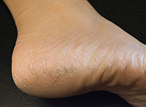 발 뒤꿈치를 중심으로 발바닥의 피부가 두껍게 각질이 생기고 갈라지면서 통증이 생기는 유형으로 가려움증은 거의 없어 무좀인줄 모르는 경우가 대부분이라 치료를 놓치는 경우가 많습니다.
