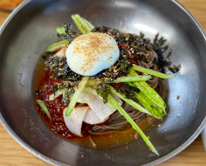 비발디파크 근처 맛집 추천 베스트 10 중 열번째로 소개할 맛집은 홍천메밀가입니다. 이곳은 참깨가 듬뿍 올려져 있어 고소하면서도 새콤달콤이 가득한 참깨 막국수와 두툼하게 썰린 육회와 메밀싹이 올라가 있는 메밀싹 육회 막국수가 있으며, 또한, 기름기가 많지 않은 부위를 사용하여 부드럽고 촉촉하게 삶아진 수육과 고소한 감자전도 맛볼 수 있는 곳입니다.